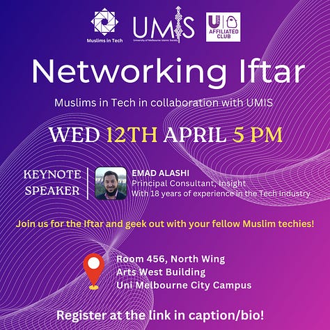 📣 Exciting news, Muslim techies! The next Muslims in Tech event is coming to Sydney! 🚀